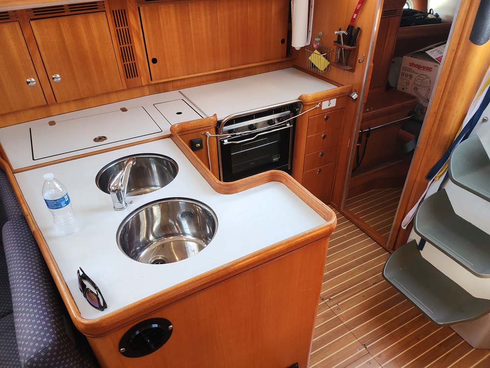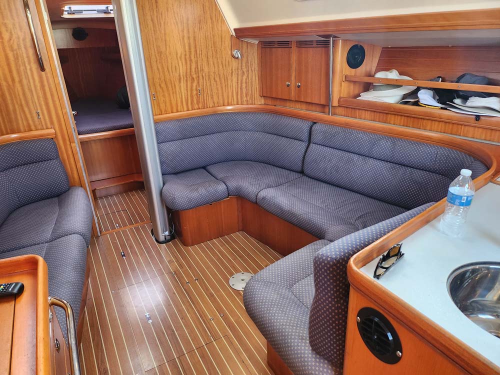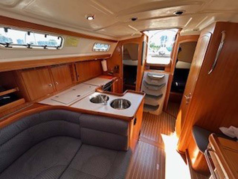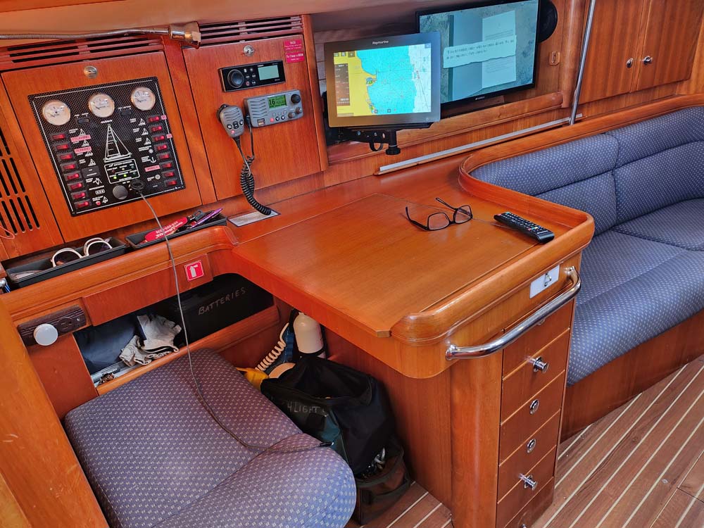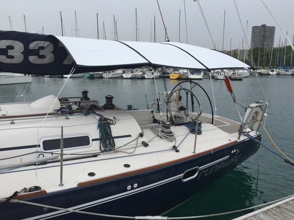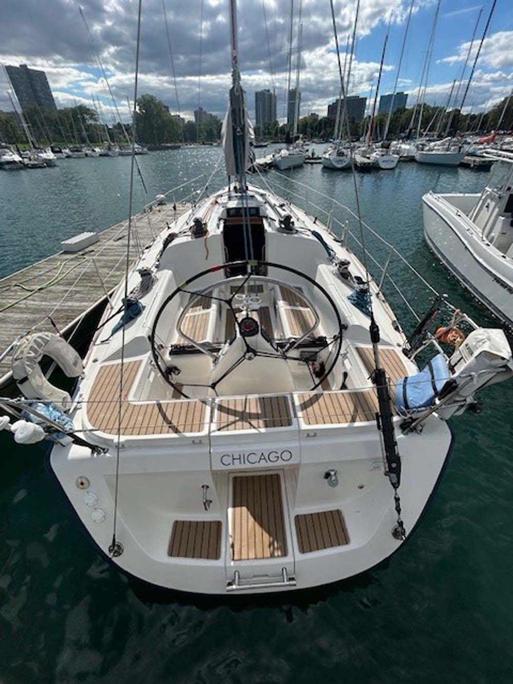 Sleek and attractive, the Elan 40 is built to sail quickly and easily with a structure designed to give any sailor confidence. Runaway is a beautiful example of this highly respected model. Fresh water only. She is fully equipped to either cruise or race, in fact she is a known winner on the Great Lakes. PHRF rating of 72 will keep you in the hunt for trophies. Raymarine electronics installed in 2021 include 12″ chartplotter, wind speed and depth, AIS radio and Sirius weather. The cabin is well thought out and has a cruising feel with AC and creature comforts. Don’t let that fool you though as a full complement of racing sails is included to create serious race aesthetics. Carbon spin pole and Trogear removable bowsprit.